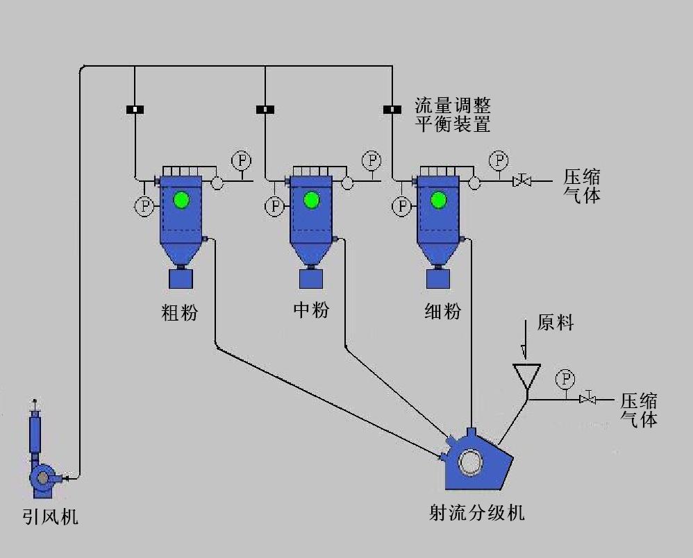 具有非常精確和穩定的分級效果,適用于對產品質量和穩定性要求極高的精密分級,將原料一次性分為粗、中、細粉 三部分。